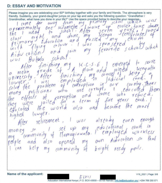 Lesen Sie hier das Motivationsschreiben von Elvis. Darin beschreibt er, weshalb er gerne weiterhin die Schule besuchen möchte.